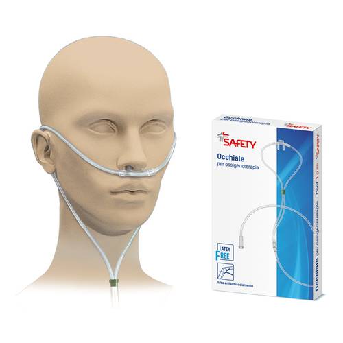 Safety Dispositivo medico CE. Cannula nasale per la somministrazione terapeutica dell'ossigeno. Tubo antischiacciamento lunghezza cm 210.